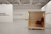 Les sculptures en bois sont comme des mini cellules qui structurent l'espace et servent de boîtes vidéo / audio mais en même temps, elles s’apparentent aux caisses de transport d’oeuvres. Ce sont des formes hybrides qui oscillent entre une présentation, un dispositif et une installation.